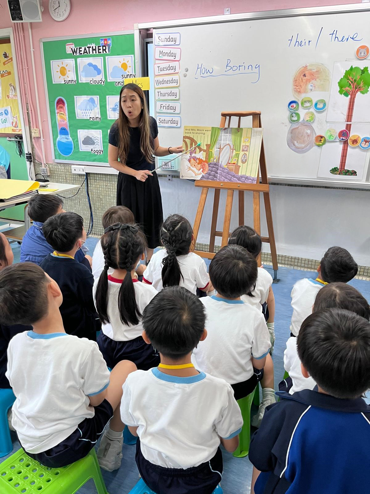 Amusing big books are read with Miss Teresa (left) and Miss Anna (right)
