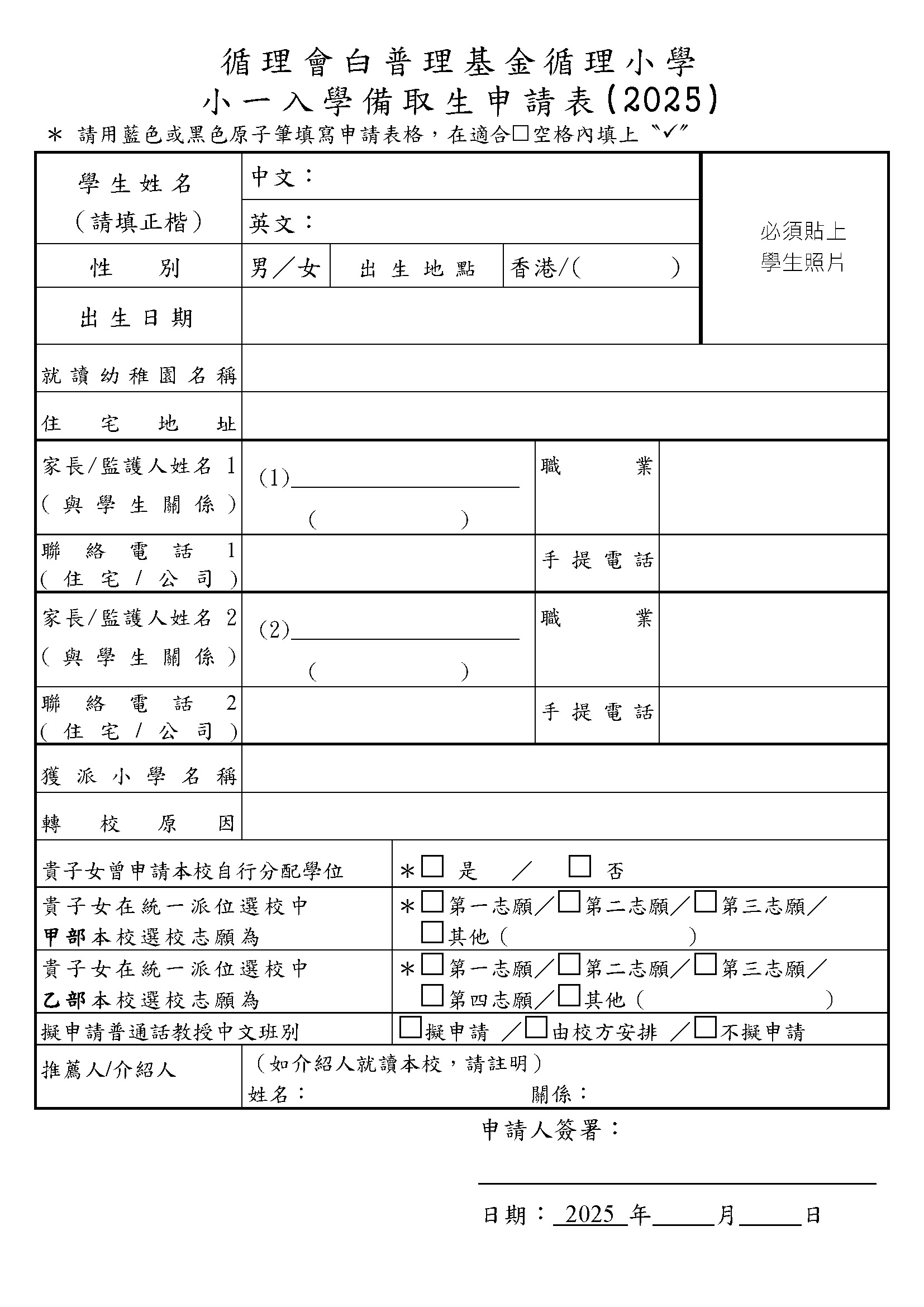 小一備取生申請表格與須知 2025-2026
